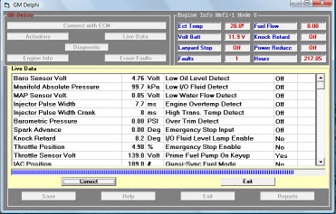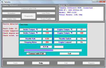 SEA DOO 4-Tec, Diagnostic, show and erase fault codes plus (new) freeze window. Freeze window shows vehicle status for the time the fault occurred (for each fault code).