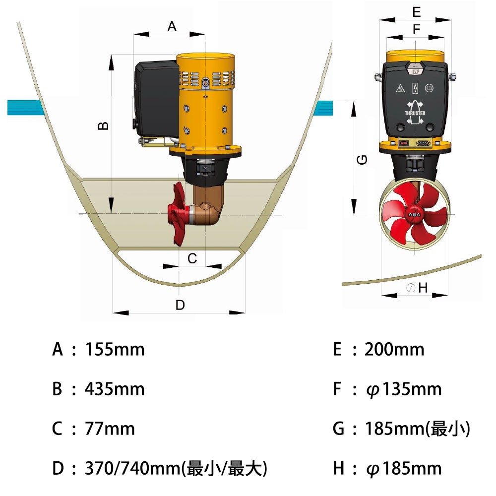●バウスラスターを装備するにはモーター本体に、トンネル、コントロールスイッチ、延長ケーブルが必要となります。
