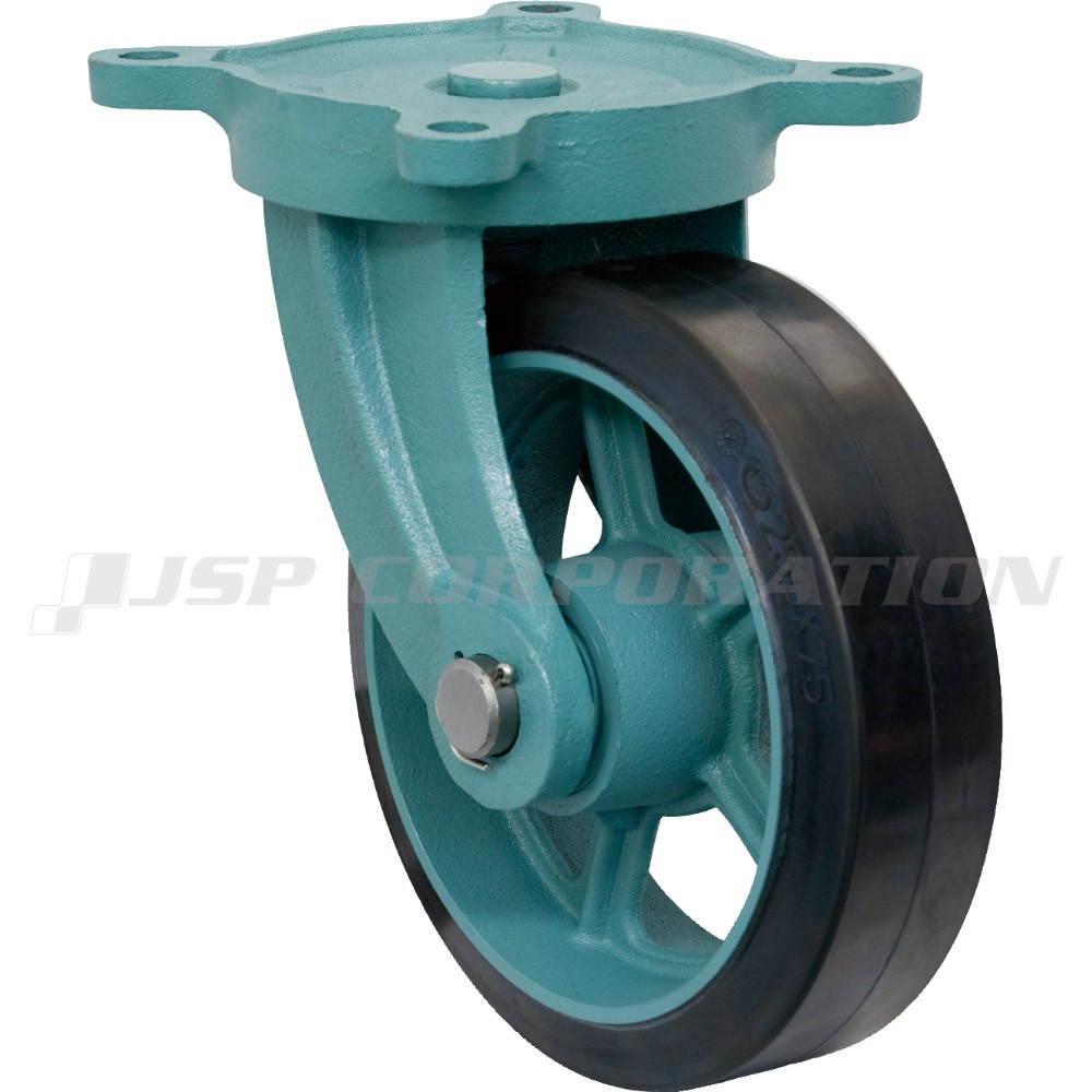 船台幅広型キャスター ゴム車輪 (ベアリング入り) 自在金具付 E-MG-O 250×75