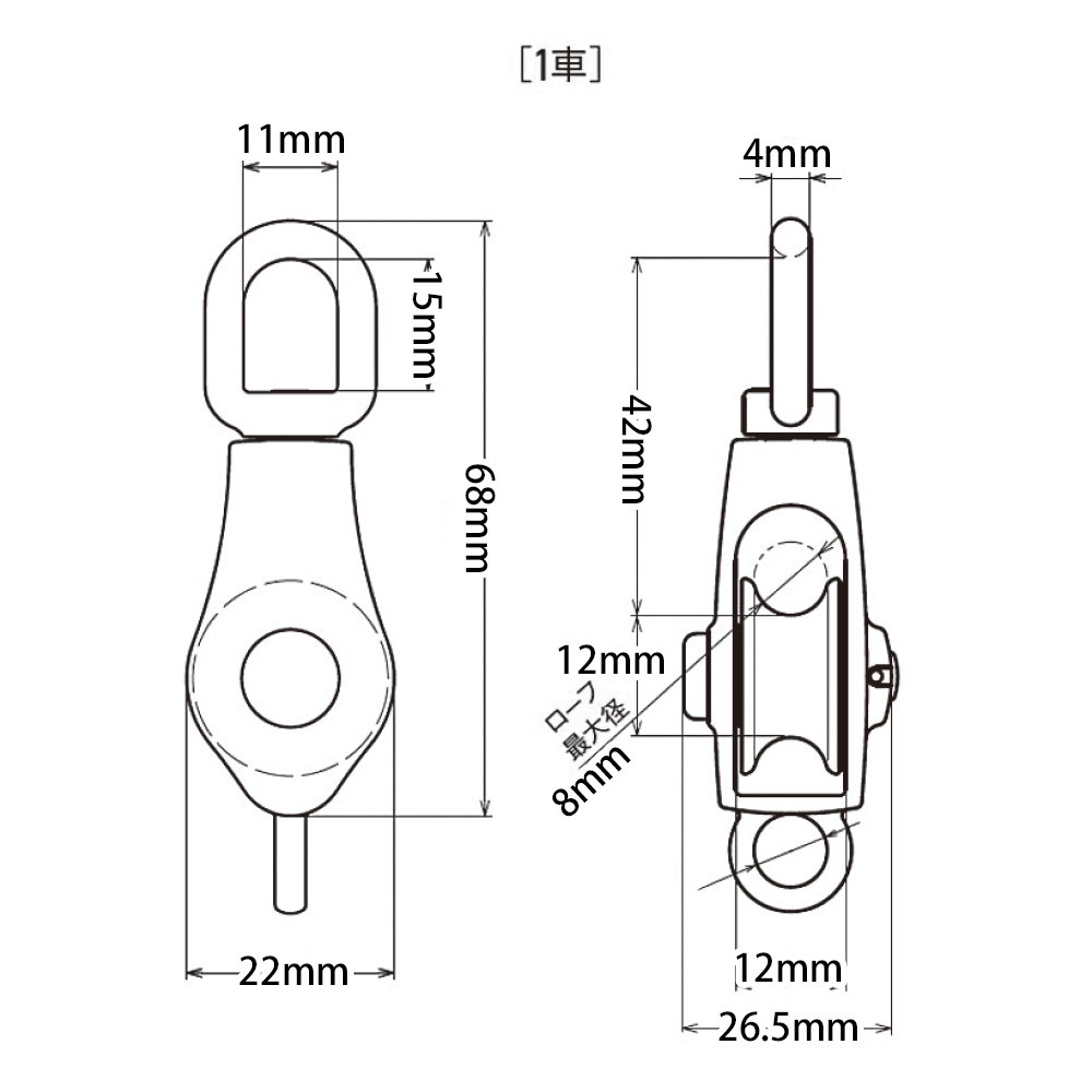 ■サイズ:(d)4、(L)68、(L1)15、(L2)42、(D1)12、(B)22、(B1)11、(B2)-、(t)12、(t1)26.5