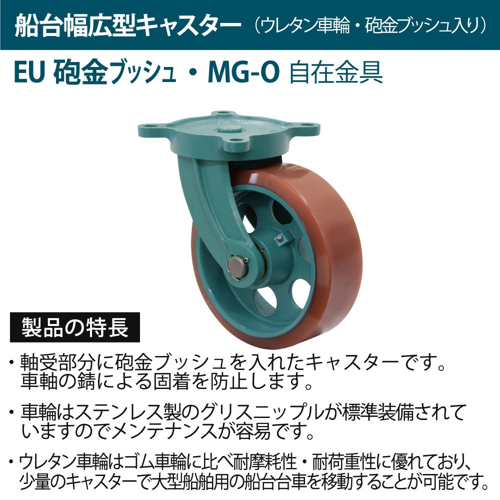 船台幅広型キャスター ウレタン車輪 (砲金ブッシュ入り) 固定金具付 EU-MG-W 300×90