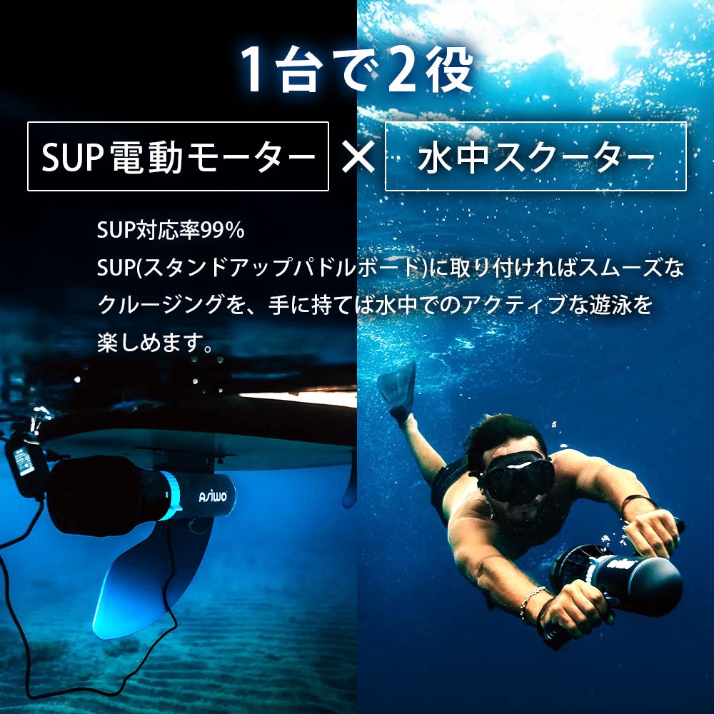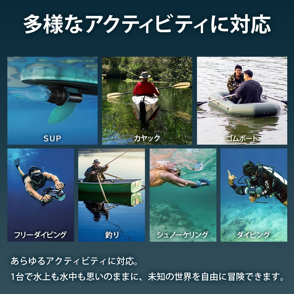 ●SUPアドベンチャーを広げる2 in 1 アクアティックスクーター。1台で水上も水中も思いのままに、未知の世界を自由に探検できます。