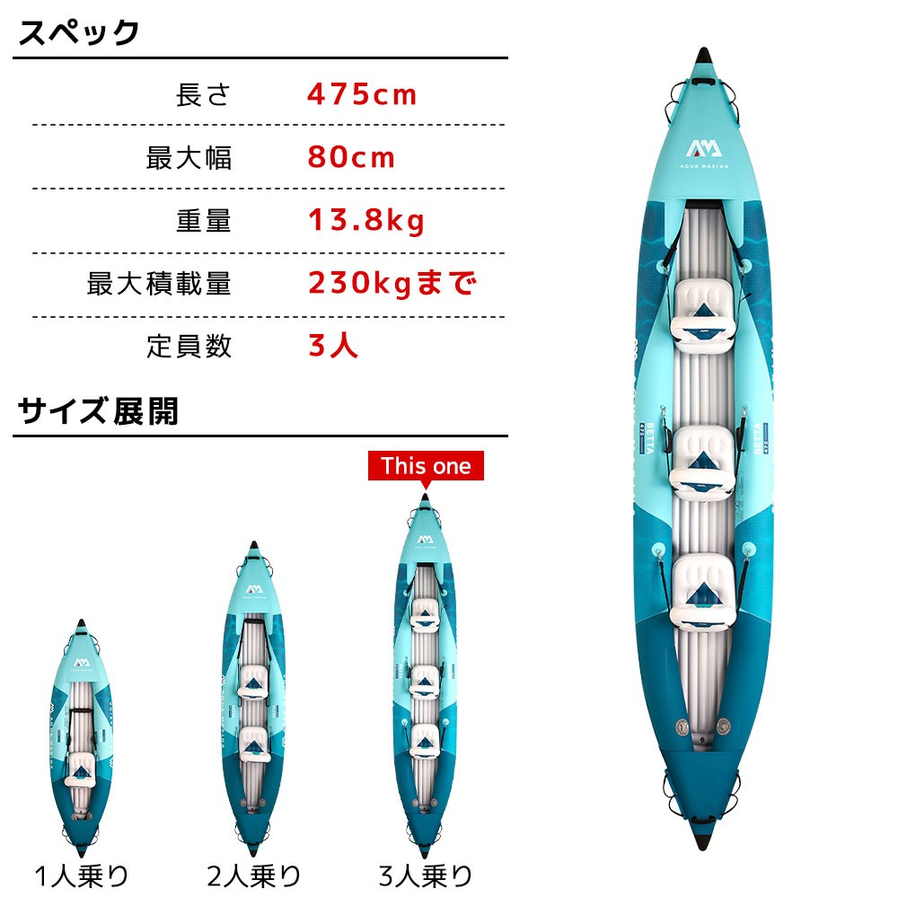 AQUA MARINA(アクアマリーナ)Betta ベッタ カヤック インフレータブル パドル付 3人乗り 商品番号:BE-475-A 定価: ¥118,800(税込) 送料 北海道 青森県 岩手県 宮城県 秋田県 山形県 福島県 茨城県 栃木県 群馬県 埼玉県 千葉県 東京都 神奈川県 山梨県 長野県 新潟県 富山県 石川県 福井県 岐阜県 静岡県 愛知県 三重県 滋賀県 京都府 大阪府 兵庫県 奈良県 和歌山県 鳥取県 島根県 岡山県 広島県 山口県 徳島県 香川県 愛媛県 高知県 福岡県 佐賀県 長崎県 熊本県 大分県 宮崎県 鹿児島県 沖縄県 [注意事項]※離島(全国)は沖縄県の送料になります。 在庫状況 海外取り寄せ ※説明を見る 注意マーク 現在ログアウト状態になっています。 商品をカートに入れるには、ログインして下さい。 ※RESUCOは卸販売部門のため、商品購入には登録が必要になります。 新規取引申し込みの詳細はこちら 注文数量 ▲ ▼ カートに入れる