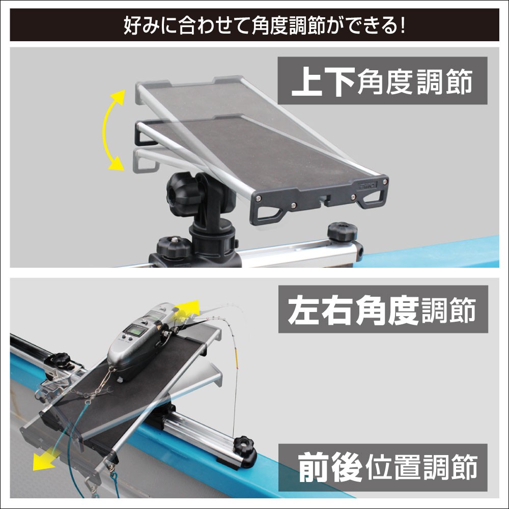 ●前後位置調節がノブネジ仕様になり、簡単にリール台の前後の位置を変更することが可能になりました。また、本体シャフト部分のノブネジを緩めることで、首振り角度を調節することが出来ます。