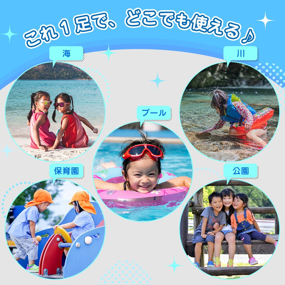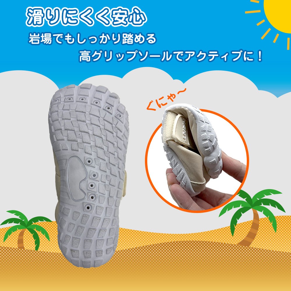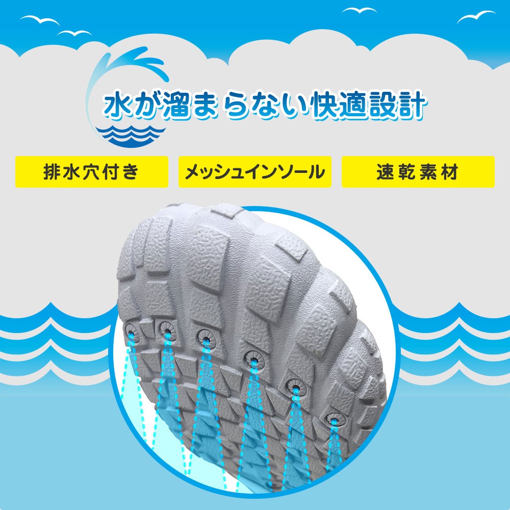 ●サンダルのように脱げる心配がなく、水辺でのケガ防止にも最適。