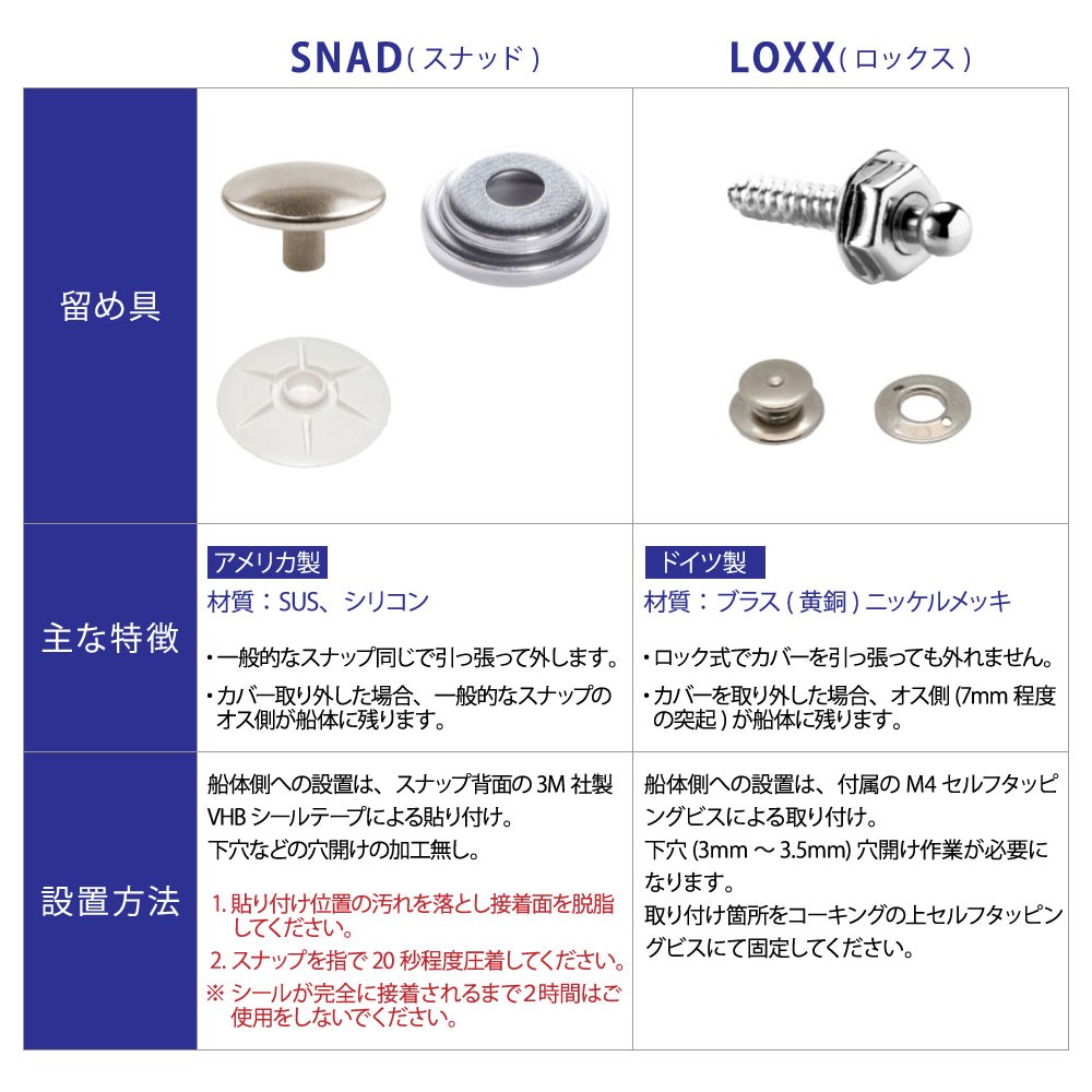 ■留め具種類:SNAD(スナッド)、LOXX(ロックス)
