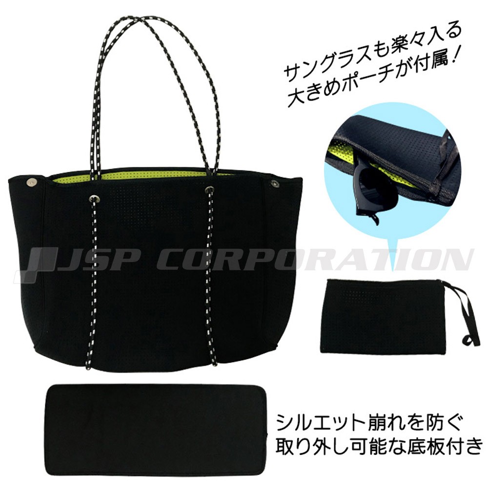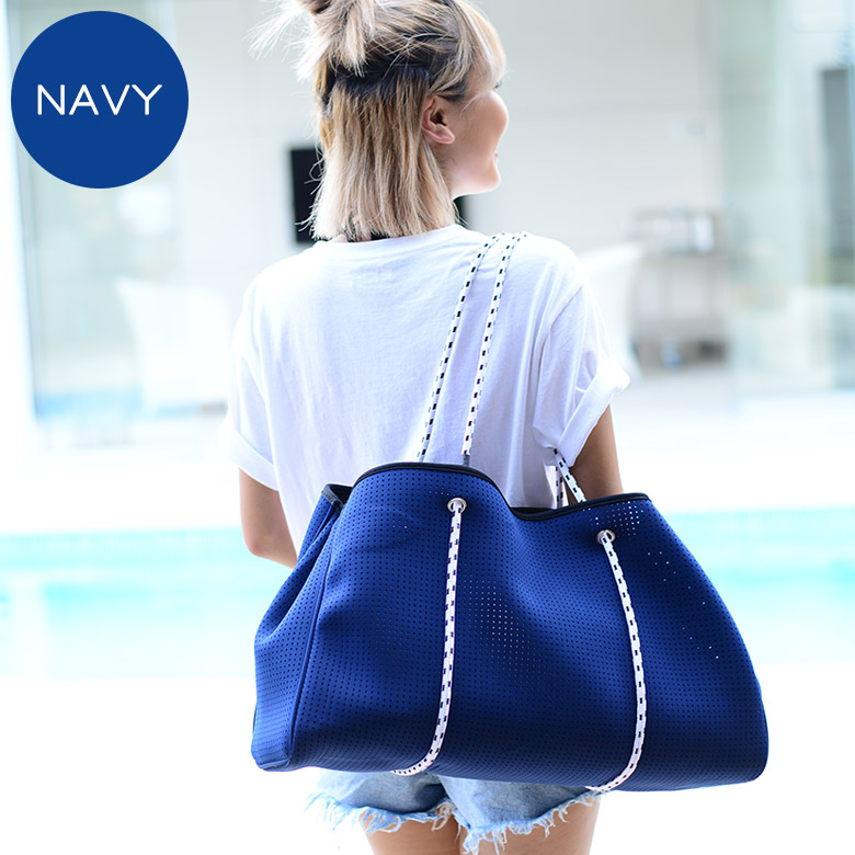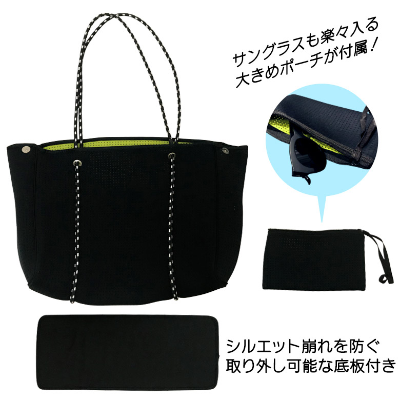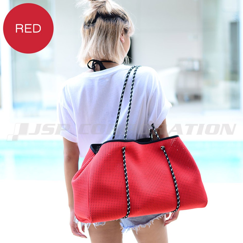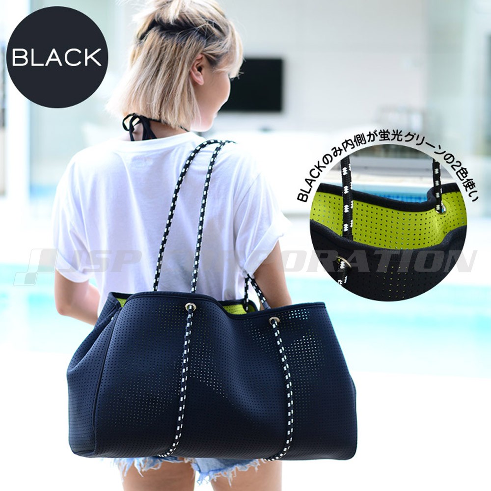 ●スポーツ、アウトドア、マリン、レジャー、どんな場面でもマルチに使えるネオプレン素材のトートバッグ。