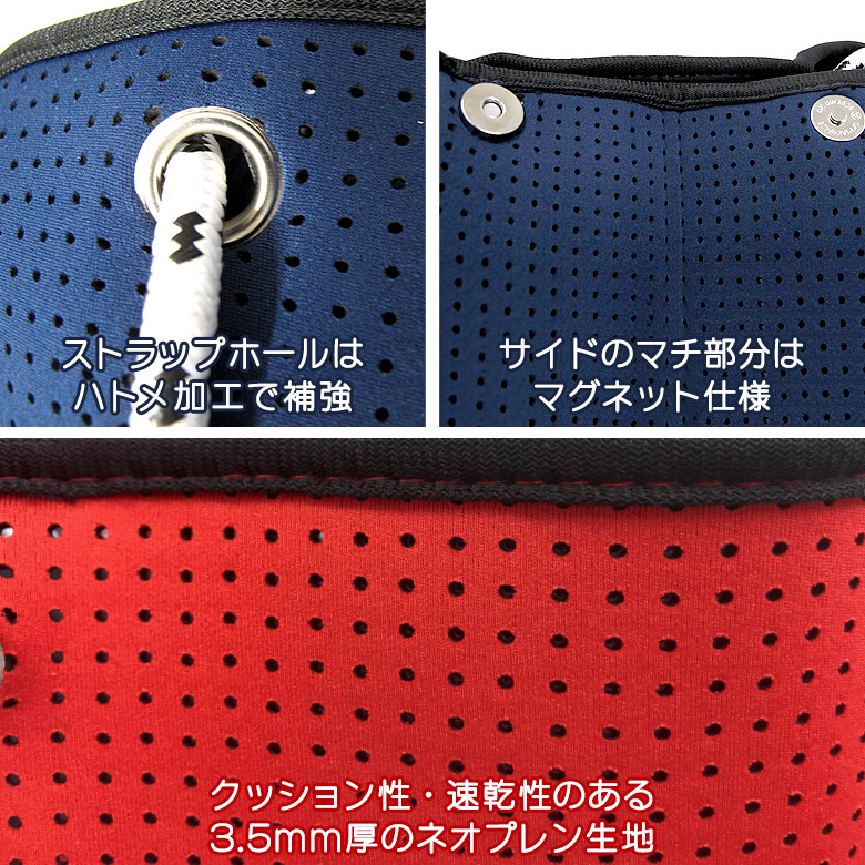 ●ネオプレン生地はウェットスーツにも使われるほど軽くて丈夫、そして丸洗い可能なトレンドの素材です。