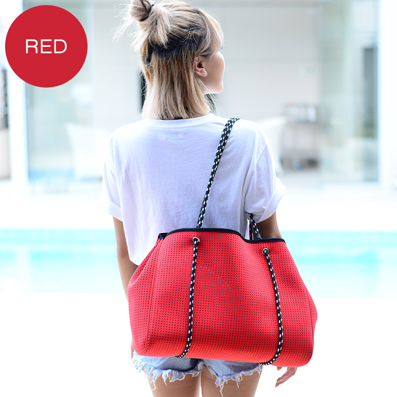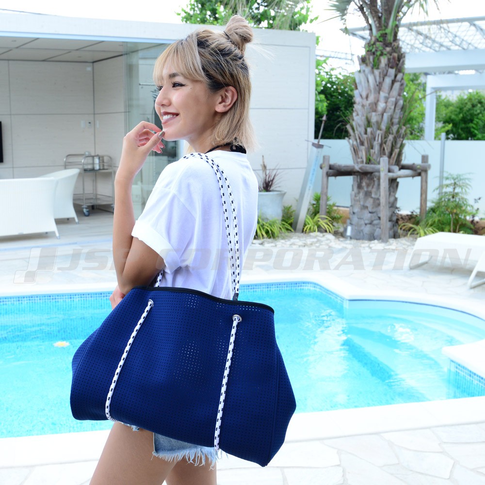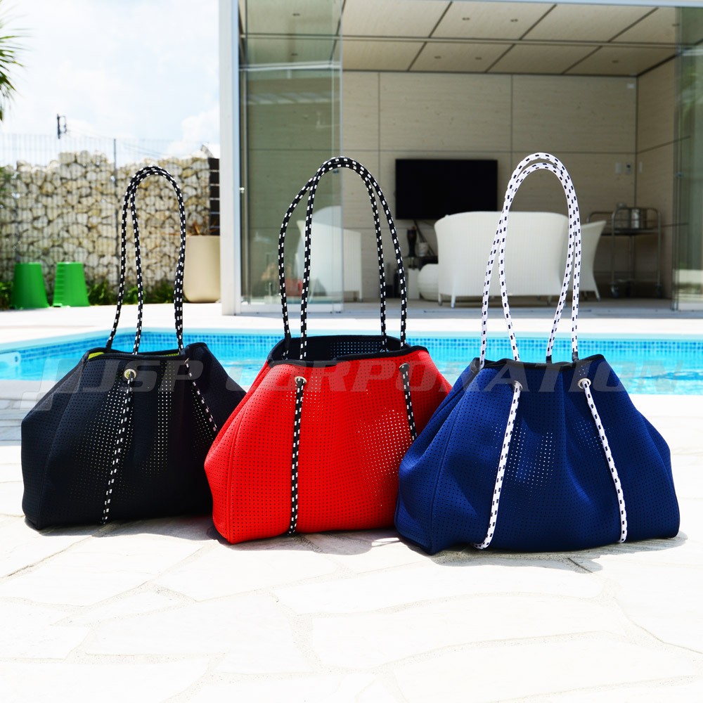 ●スポーツ、アウトドア、マリン、レジャー、どんな場面でもマルチに使えるネオプレン素材のトートバッグ。