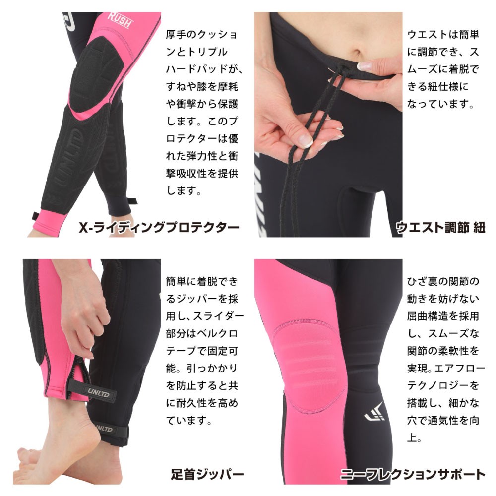 ●鮮やかなネオンカラーと高パフォーマンス、ストレスフリーな履き心地で、UNLIMITED最高峰のスペックを搭載したロングパンツタイプのウェットスーツ。