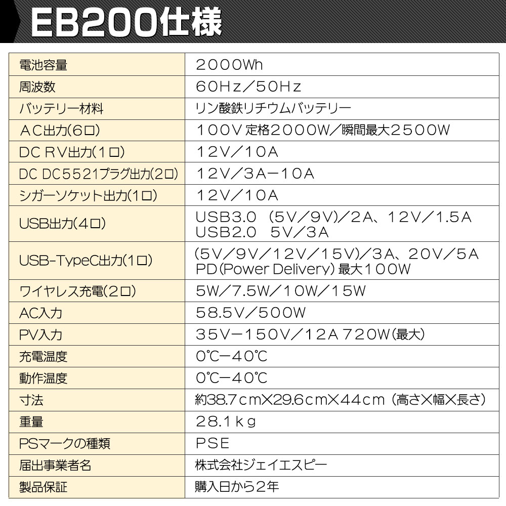 ポータブル電源 EB200 超大容量625000mAh/2000Wh 瞬間最大出力2500W