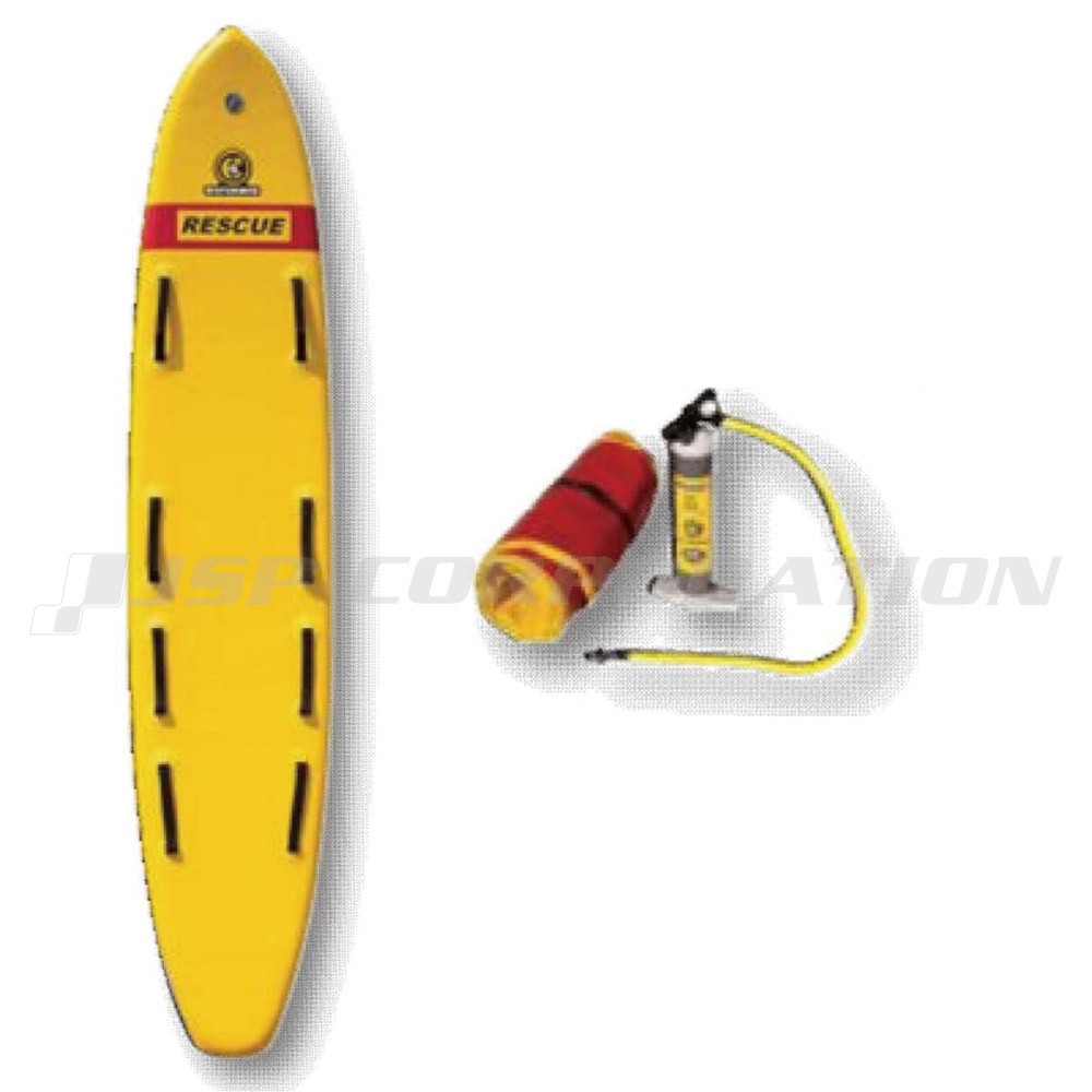 ●安全性・操作性・耐久性を考え設計されたポータブル機能を兼ね備えたインフレータブル式レスキューボード。バッグ、ハンドポンプ、リペアキットが付属