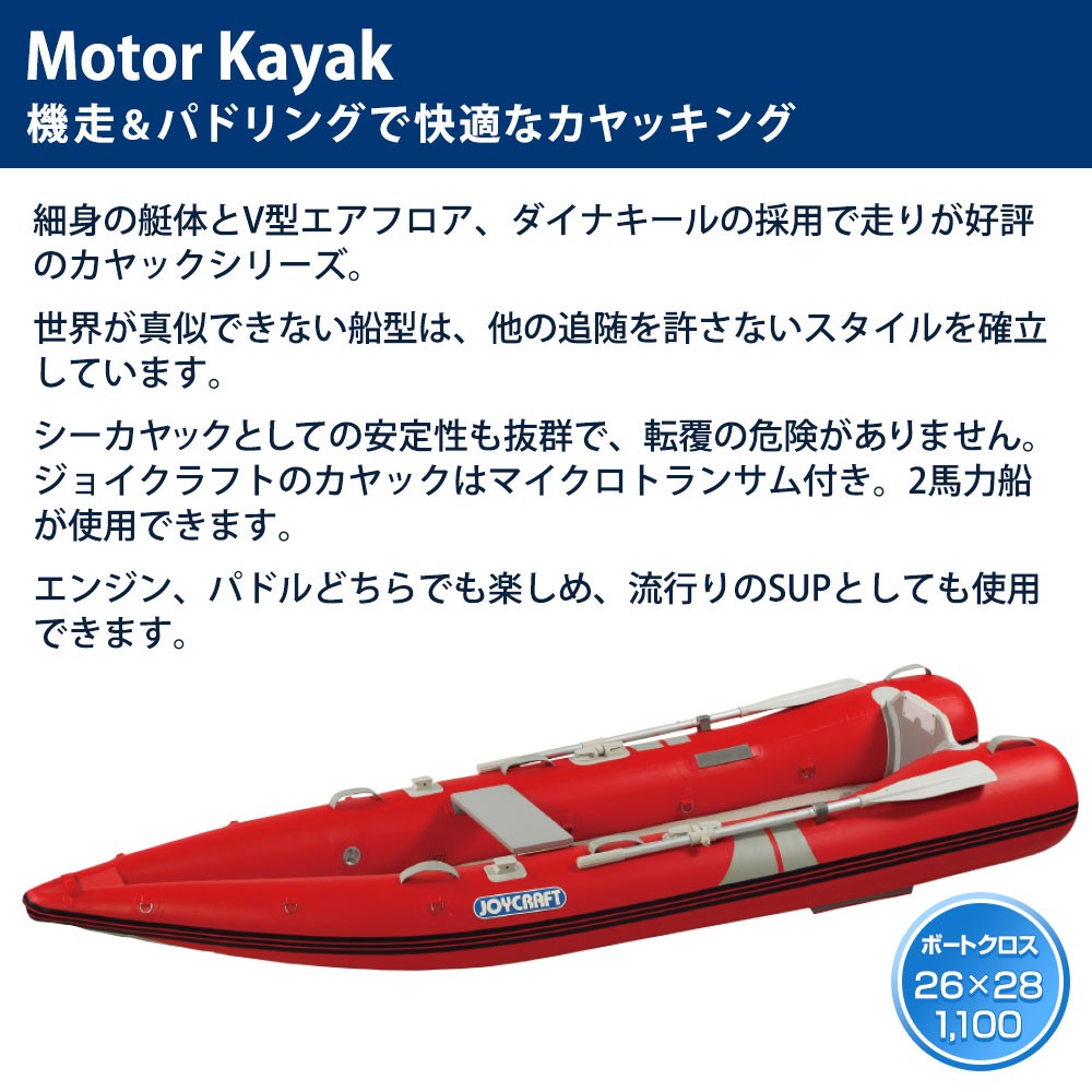 インフレータブルボートのエキスパートであるジョイクラフトの造るカヤックは、高い安全性はもちろん、V型ボトムの採用で乗り心地もほかとはひと味違います。
