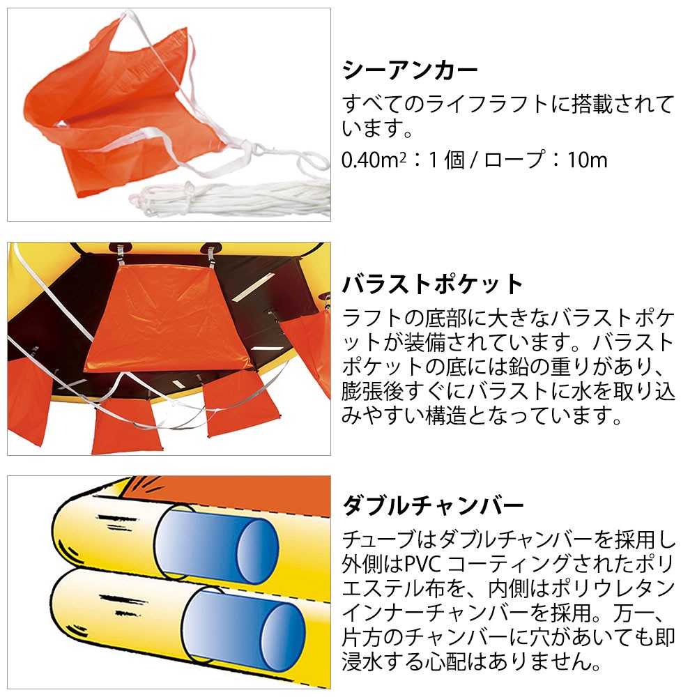 ●CRULSERライフラフトはJCL規格適合品ではありません。JCL検査には別途、救命浮器などをご用意ください。