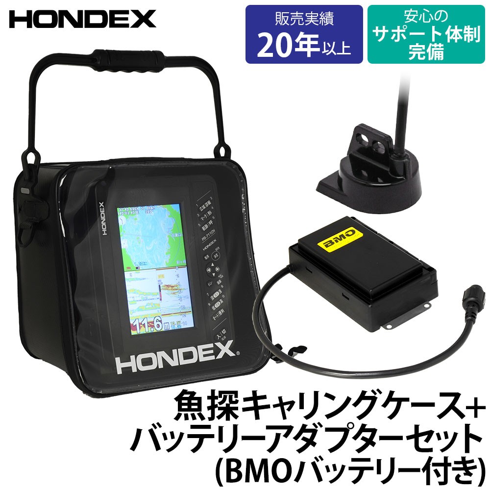■付属品:振動子(TD04A)、トランサム金具、電源コード(DC06)、自立ベース、ハードカバー(CV12)、架台、BMO製バッテリーパック、バッテリー専用チャージャー、BMOバッテリーアダプター(BA01)、GPSアンテナ(内蔵)、地図(全国詳細地図内蔵)、取扱説明書