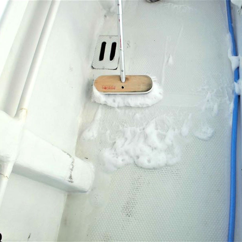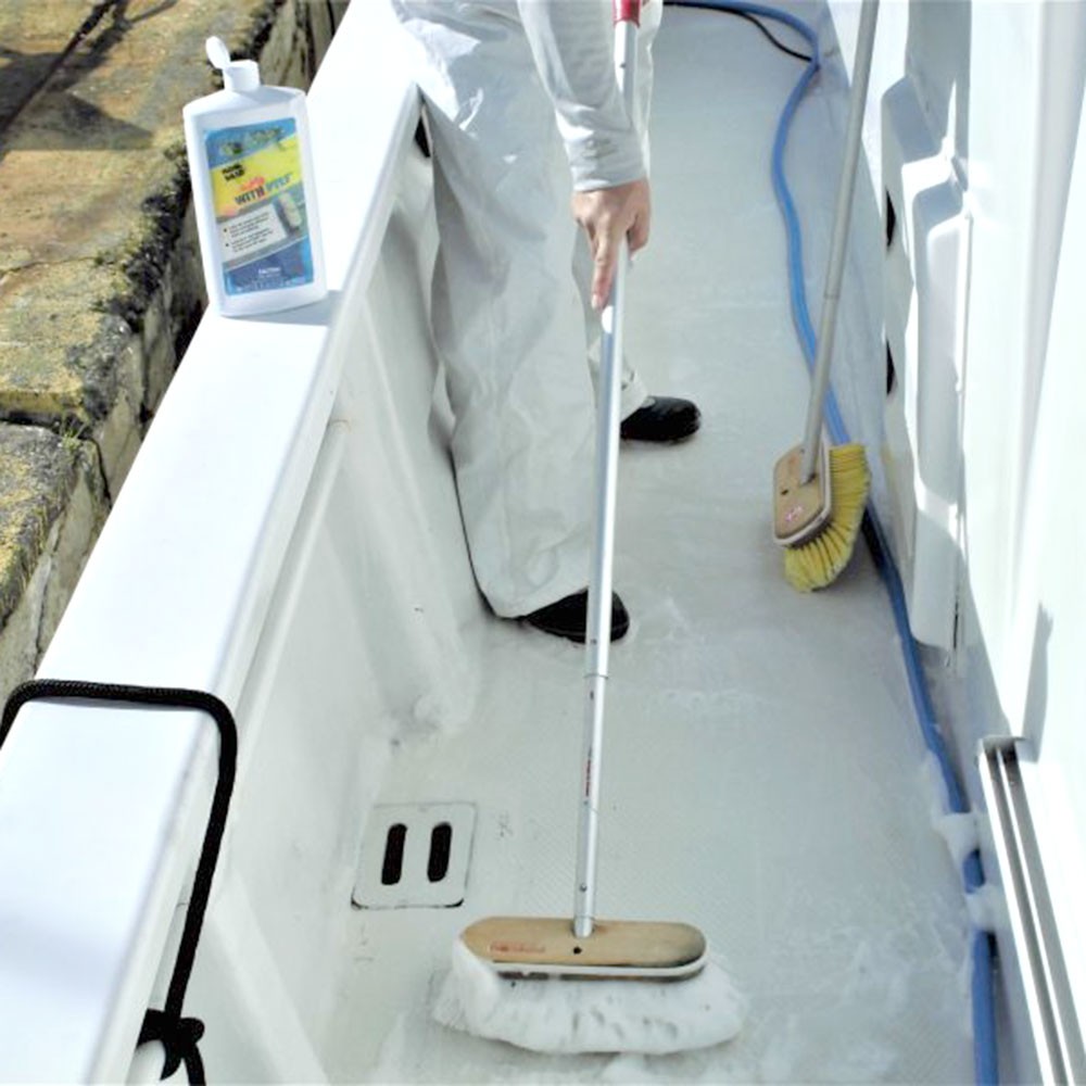 ●滑り止め加工したデッキ用のクリーナーで、凹凸部分の汚れを落とします。