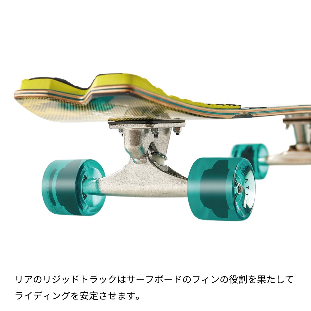 ●リアのリジッドトラックはサーフボードのフィンの役割を果たしてライディングを安定させます。