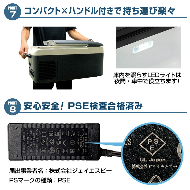 ■セット内容:冷蔵庫本体、AC電源用ケーブル、AC電源アダプタ、DC電源ケーブル、取扱説明書(日本語)