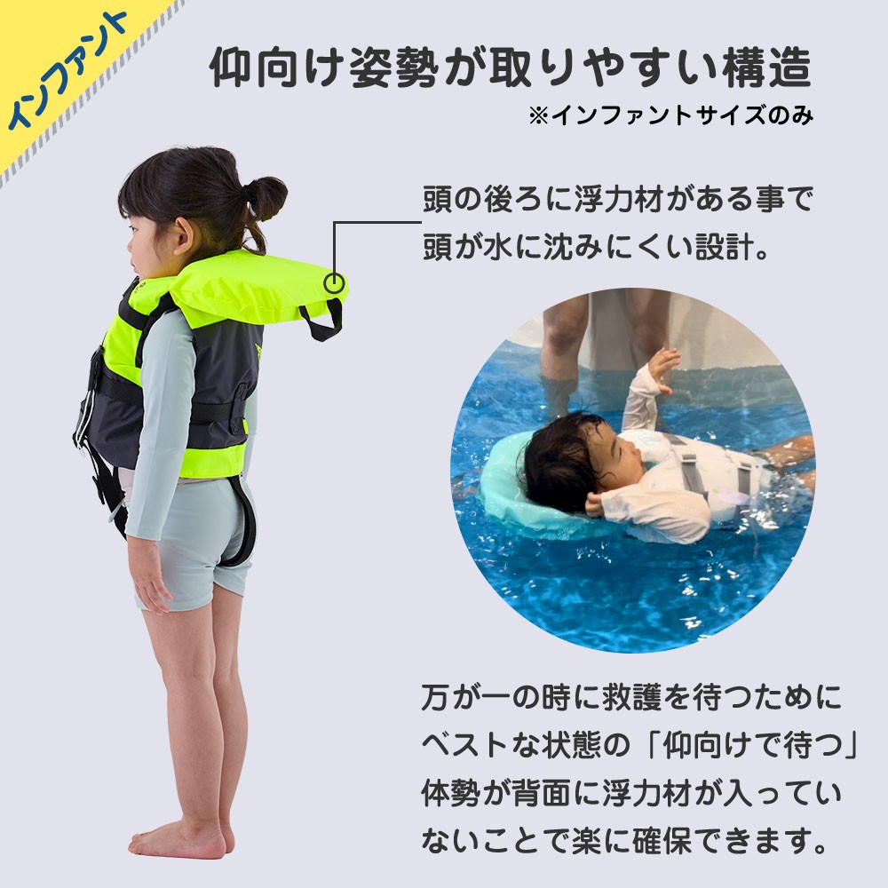 【展示品】船検対応キッズライフベスト USGG 股下ベルト、頭付き ブルー INFANT