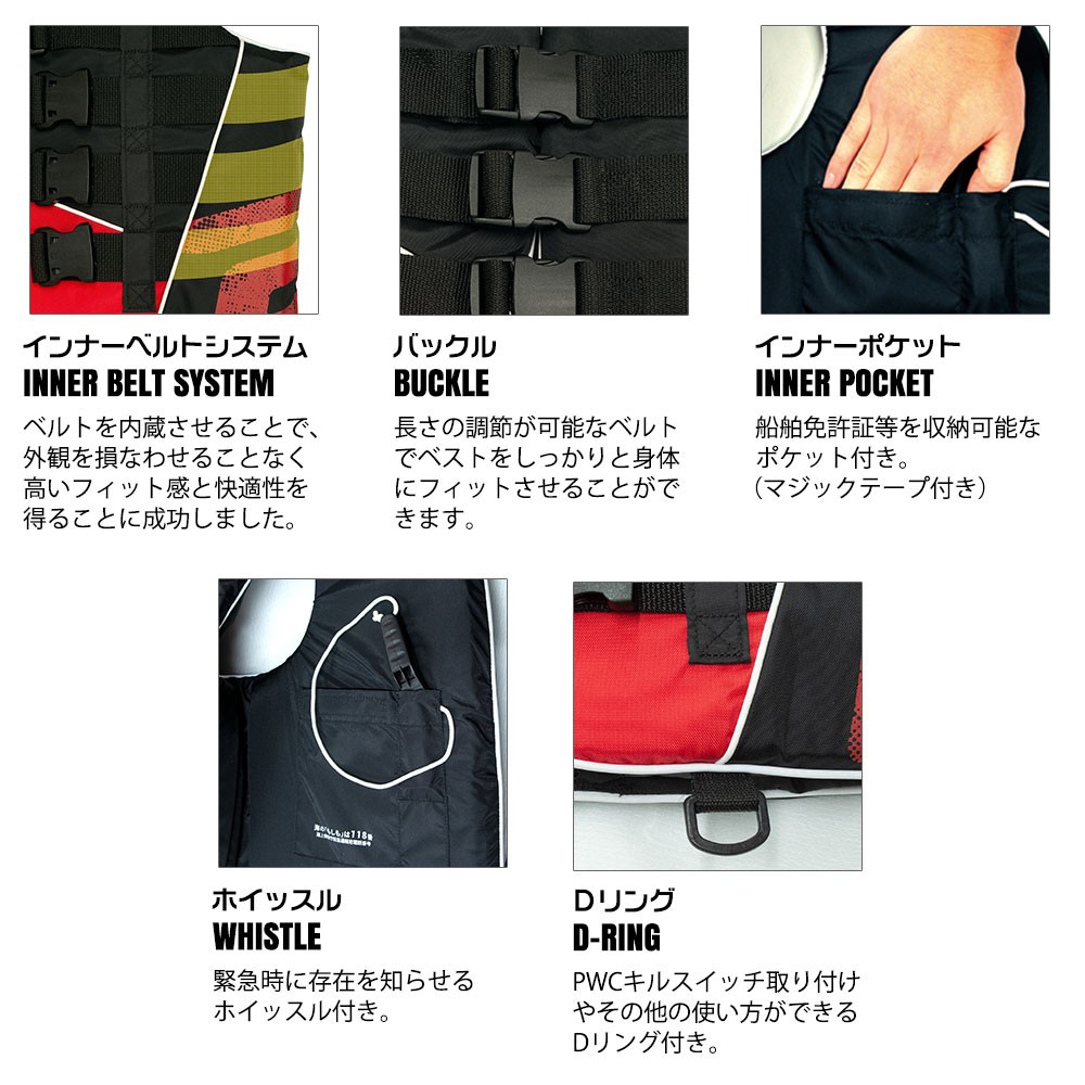●浮力は7.5kg以上あり、国土交通省が定める救命胴衣の安全基準に適合するライフジャケットです。