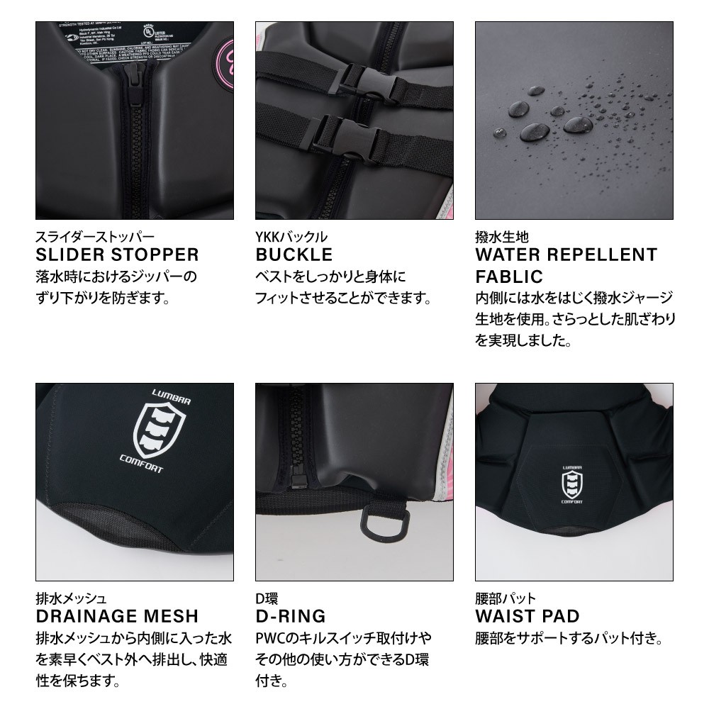 ●浮力は7.5kg以上あり、国土交通省が定める救命胴衣の安全基準に適合するライフジャケットです。
